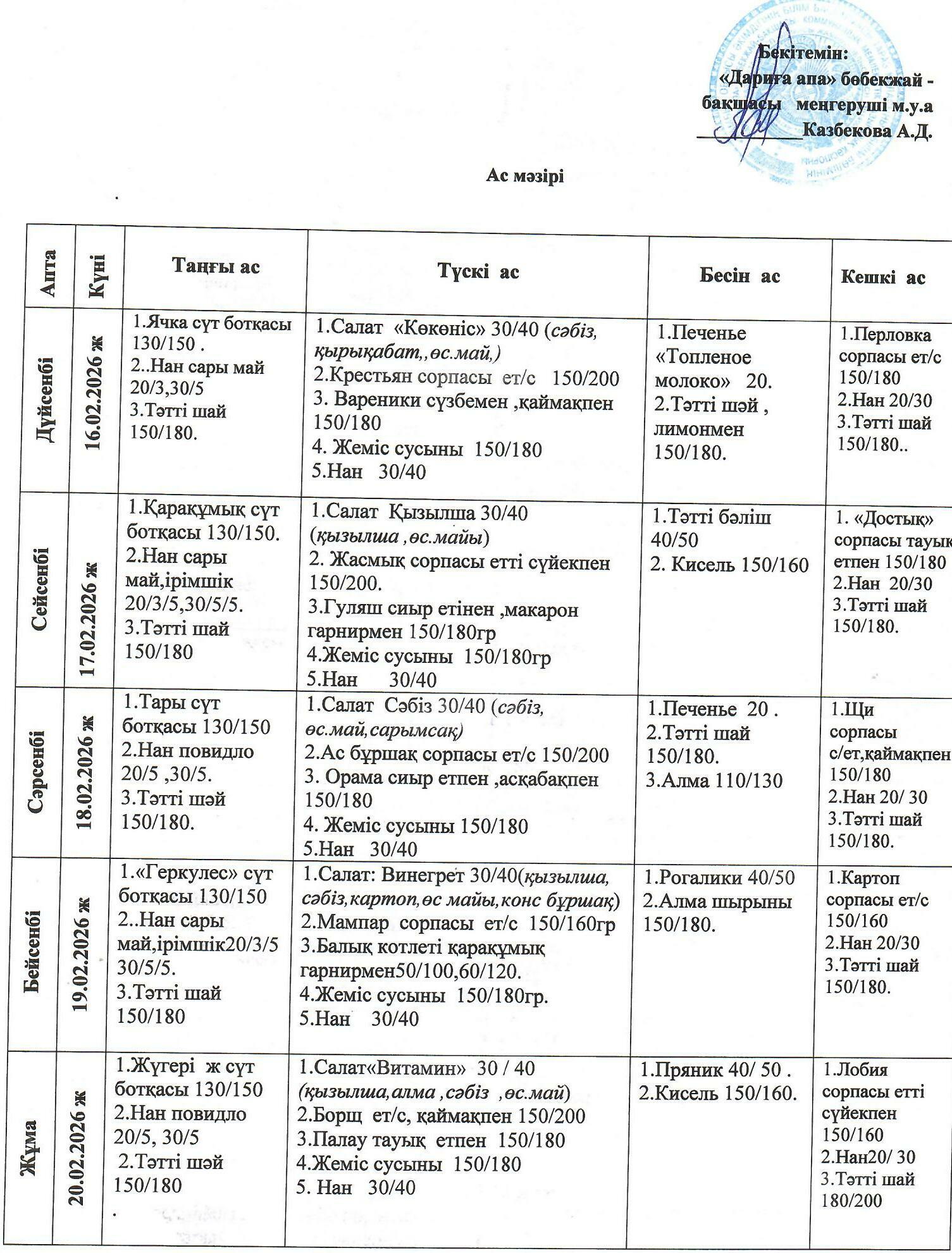 » Ас мәзірі