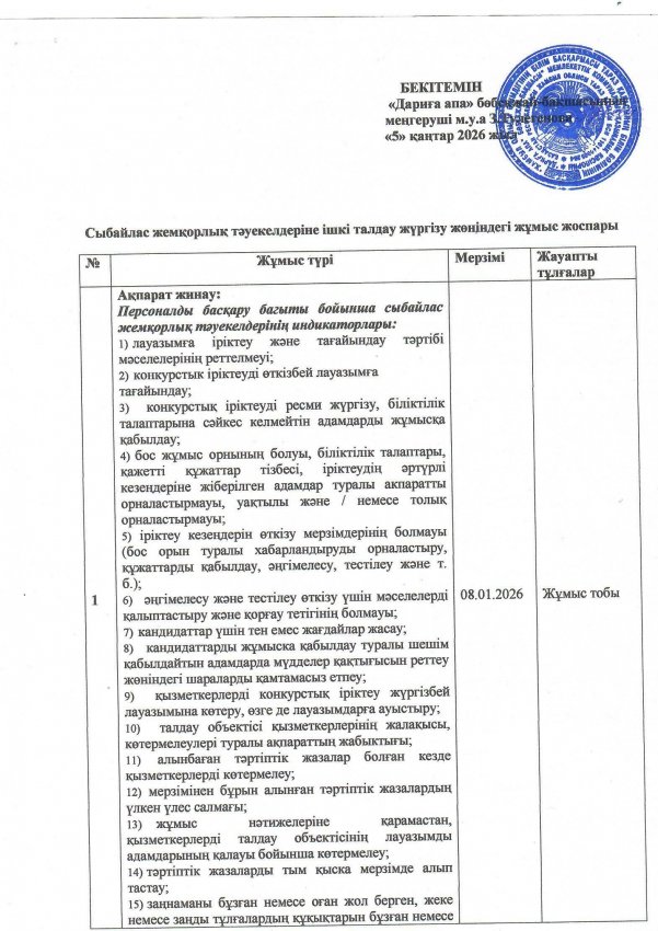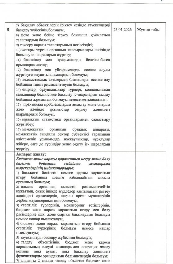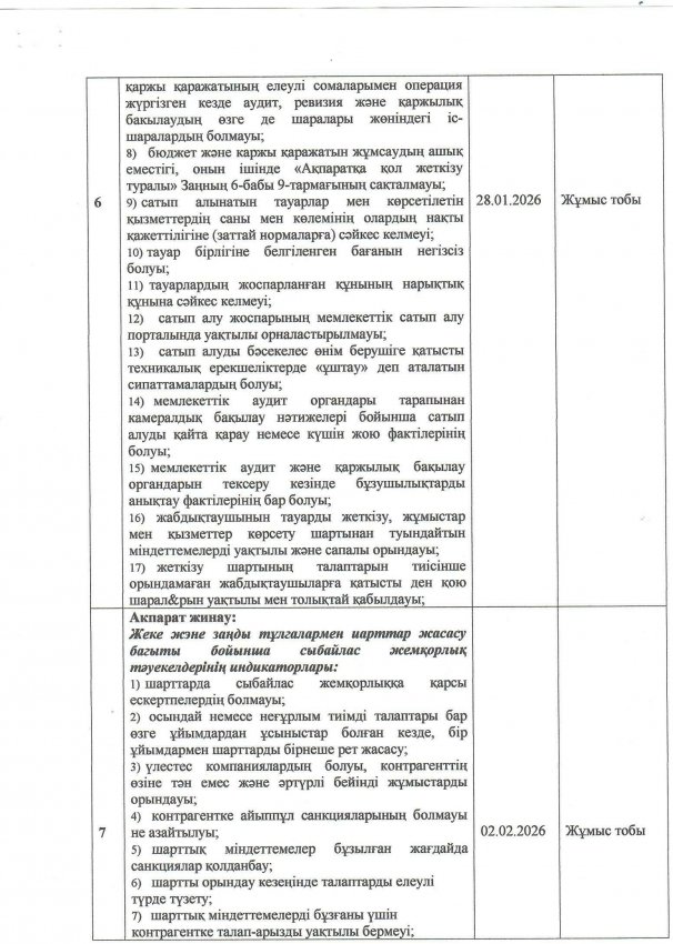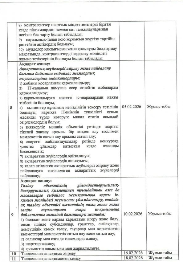Сыбайлас жемқорлық тәуекелдеріне ішкі талдау жүргізудің басталғаны туралы хабарландыру!