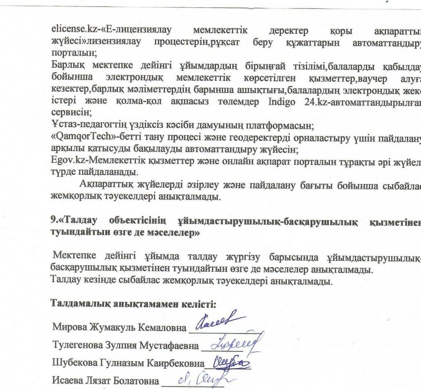 Сыбайлас жемқорлық тәуекелдеріне ішкі талдау нәтижелері туралы талдамалық анықтама » "Дариға апа" бөбекжай - бақшасы"